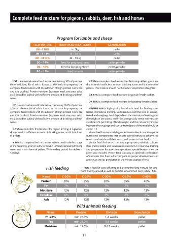 Complete feed mixture for ruminants Complete feed mixture for pigeons, rabbits, deer, fish and horses